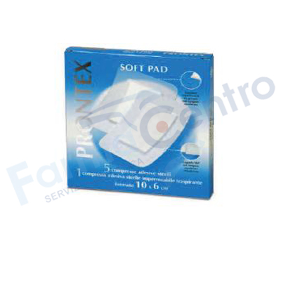 Dispositivo medico CE. 5 compresse adesive in tessuto non tessuto con tampone assorbente e antiaderente + 1 compressa adesiva impermeabile traspirante con tampone assorbente e antiaderente (AQUA PAD). Formato Formato 10 x 6 cm. Astuccio 6 pezzi (5 in TNT + 1 AQUA PAD impermeabile). Cod. 166528